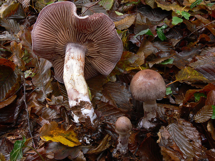| Dalle foto non mi sembra che i carpofori siano igrofani, per cui ipotizzo, con l'ausilio delle misure sporali, che trattasi Cortinarius appartenente al sottogenere Telamonia sezione Anomali: Cortinarius anomalus. |