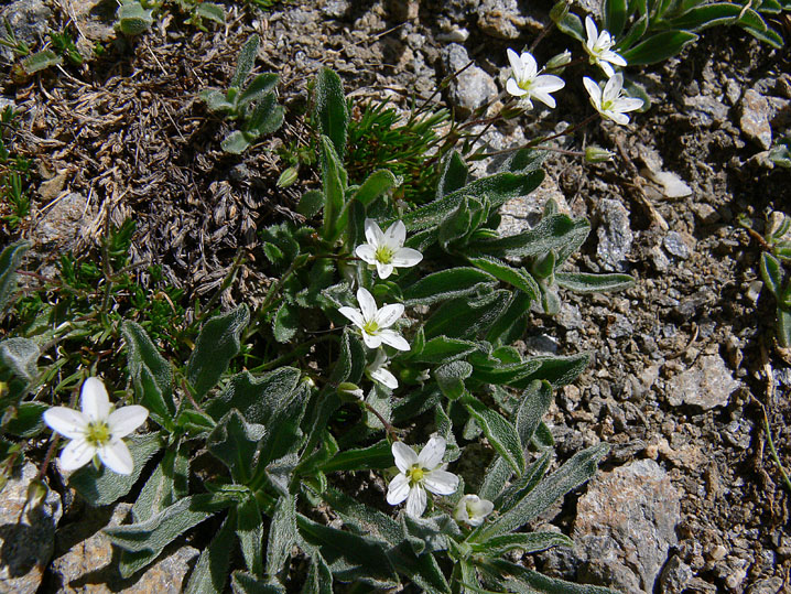 Si tratta di una Caryophyllacea, le sottili foglie e sopratutto i petali che si restrigono bruscamente alla base mi fanno pensare a Minuartia verna senza certezza alcuna