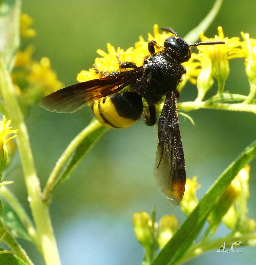 Questo mi sembra uno Scoliidae;Scolia hirta? (un po' spelacchiata?)