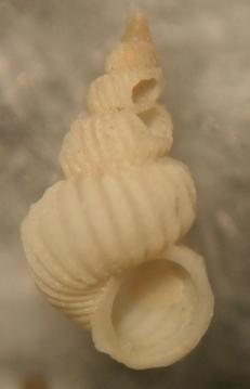 riporto la traduzione per chi fosse interessato "Conchiglia fino a 13 mm, anche se generalmente più piccole (6-7 mm). Protoconca conica, con 4,5 spirali, 500-550 ¼ m di altezza e con molte strie sottosuturali lievemente impresse. Teleoconca con fino a 8 vortici convesse e sutura profonda, con 14-15 costole laminare a spirale, formando una proiezione angolare appena sotto la sutura, e con numerose strie spirale ben impressionato in intercapedini. Protoconca marrone teloconca bianca. Questa specie è estremamente simile a E. tibrii (de Boury, 1890), e può essere virtualmente indistinguibile da essa senza il protoconca. Cresce leggermente più grande, ma il carattere più importante è che la protoconca di E. Tiberii è 0,7-0,8 volte più piccola e ha un filo chiaro sottosuturale invece di diverse spirali"