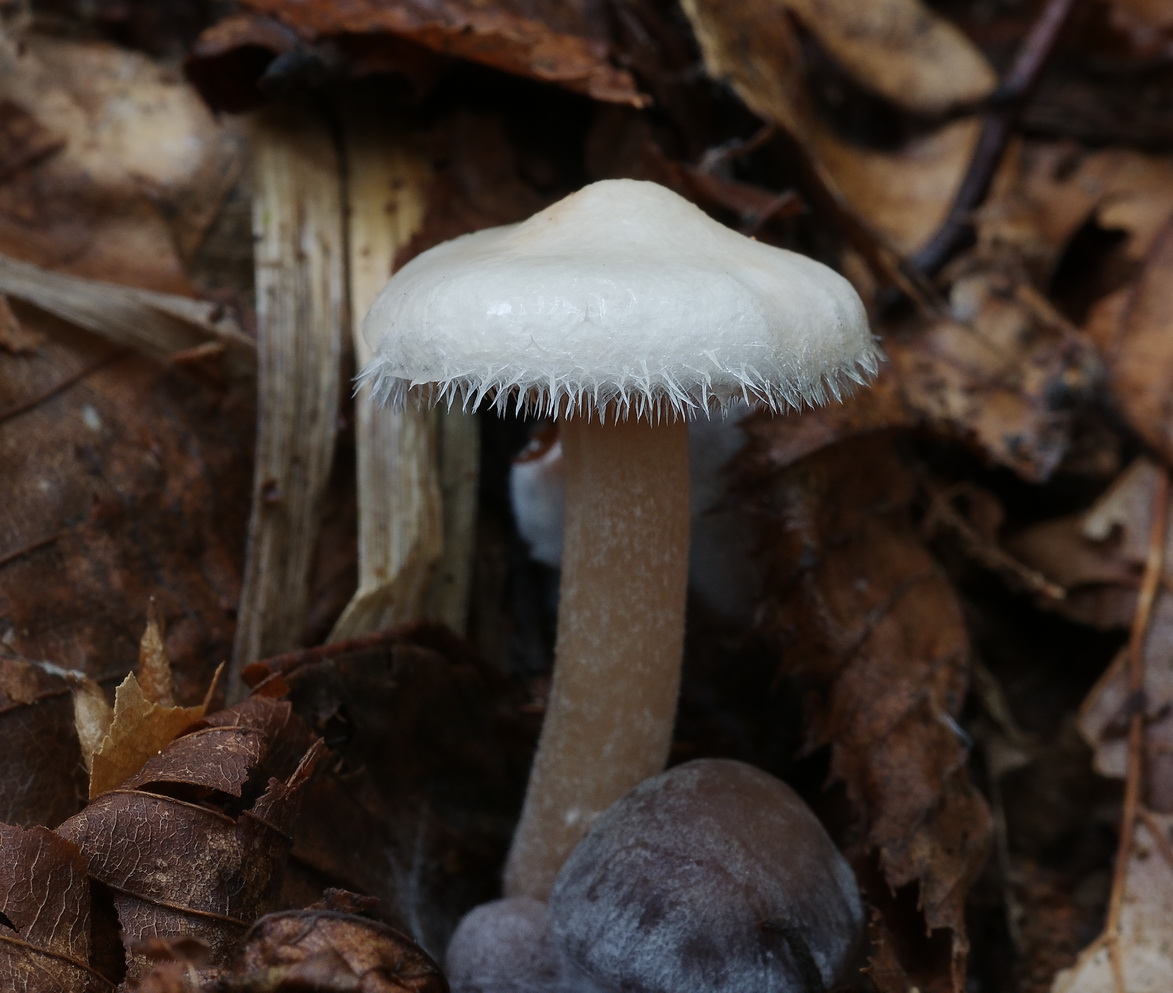 si tratta di un fungo di piccola taglia e forse (l'ho notato solo dopo sulla foto) parassita di un altro fungo (si intravvede alla base del gambo)