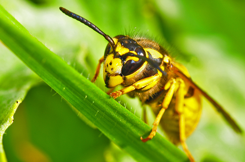 Ciao. La mia vespa soffre (quanto meno) di scarsa profondità di campo, per cui molte parti non sono a fuoco; anche il bilanciamento del bianco mi sembra sbagliato. L'ho postata come curiosità perché era imperlata di rugiada. In linea di massima, le vespe operaie e i maschi muoiono all'inizio dell'inverno, mentre le femmine fecondate svernano in una fessura riparata di un albero o anche nelle nostre case. A primavera fondano una nuova colonia (nel caso della Vespula sp., per lo più in un buco per terra); allevano da sole la prima generazione di operaie e poi si fanno aiutare dalle figlie ad allevare le generazioni successive e ad ampliare il nido.