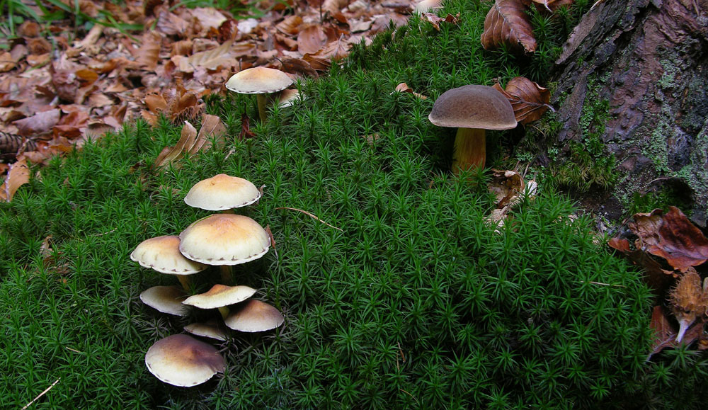 1 - Hypholoma fasciculare / Xerocomus pruinatus 2 - Macrolepiota rhacodes 3 - Hygrophorus speciosus 4 - Tricholoma saponaceum 5 - Cortinarius anomalus s.l. 6 - passo - Oudemansiella mucida? 7 - Tricholoma portentosum 8 - Cortinarius hercynicus (o violaceus) 9 - Russula puellaris? 10 - Tricholoma pardinum 11 - Psathyrella lacrymabunda 12 - Hygrophoropsis aurantiaca 13 - Tremiscus helvelloides 14 - Coprinus comatus