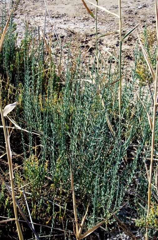 Can someone please tell me if this is Arthrocnemum fruticosum or A. macrostachyum or A. perenne? I know these 3 can be found on Aegina, but I cannot find good descriptions of the species. The photo was made in September.