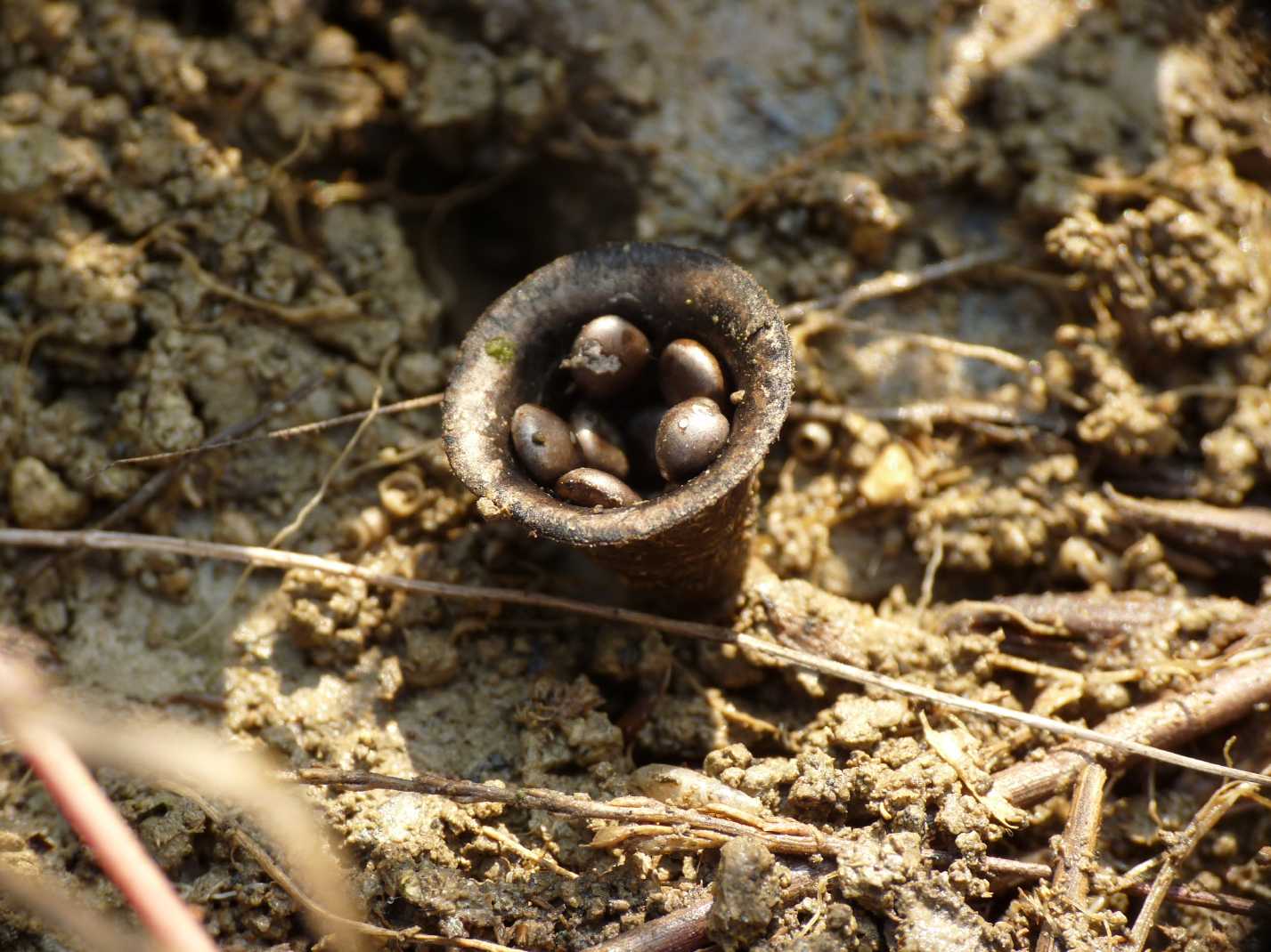 I C. sono dei curiosi funghetti che lasciano spesso incuriosito e perplesso chi li dovesse incontrare per la prima volta. Quelle piccole lenticchie al loro interno sono i peridioli, in pratica delle sporoteche: grazie alla forma della "coppa" che le contiene, basta che una goccia di pioggia la centri che i peridioli verranno scagliati fuori ad una distanza anche ragguardevole, favorendo così la dispersione delle spore.  |