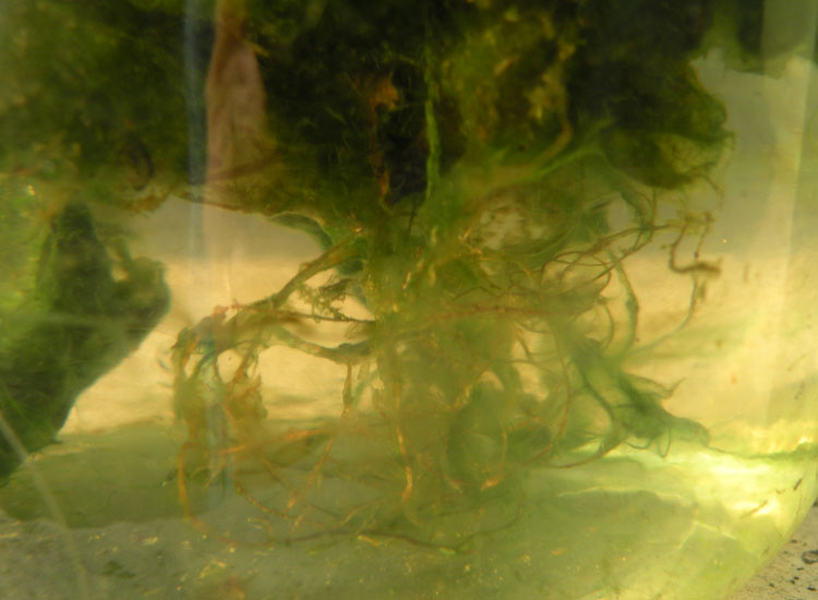 Non sono nemmeno sicuro al 100% che sia un muschio.... l'ho trovato flottante a mezza profondità nella vaschetta del mio giardino dove conservo l'acqua per le osservazioni al microscopio, frammisto a varia alghe.