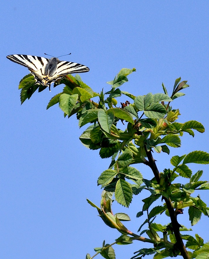Questo è un Iphiclides podalirius su un altro arbusto "familiare" (Crataegus sp.?)