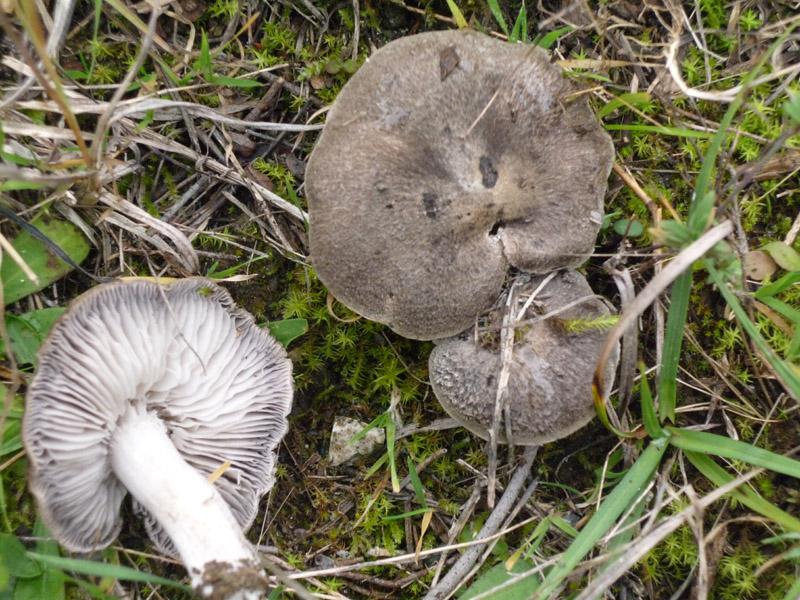 Anch'io, come Adrianurbino, voterei Tricholoma gausapatum, sia per il cappello peloso (specialmente visibile nell'esemplare più giovane), che per le lamelle alte e ondulate. Nel Tricholoma terreum il cappello è più fibrilloso che peloso e le lamelle sono più regolari e basse.