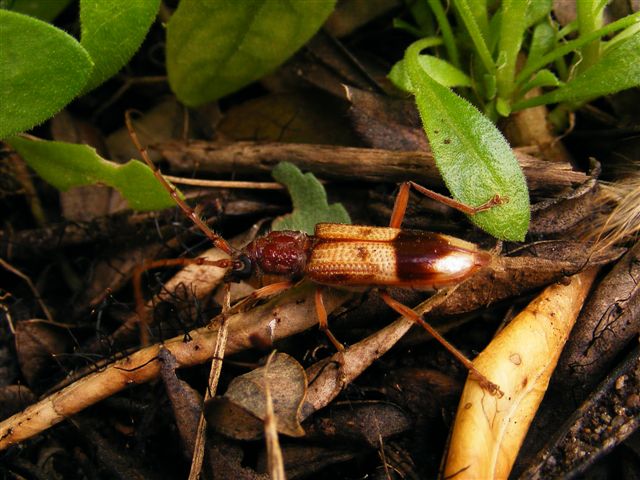 Non ho mai visto un adulto, ma trovo spesso i segni delle larve, che scavano gallerie metà nel legno e metà nella corteccia.