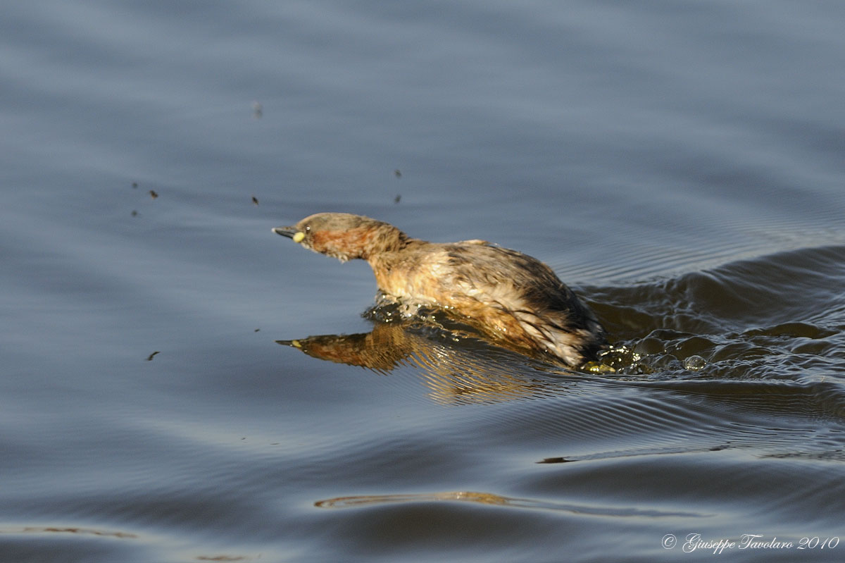Tuffetto (Tachybaptus ruficollis).in caccia.