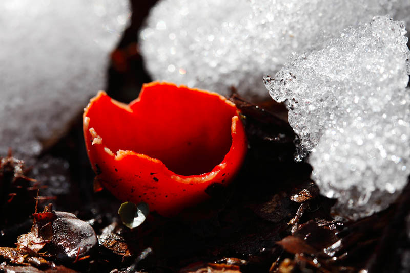 è capitato anche a me di trovarle sotto la neve. Per il micologo queste graziose coppette sono spesso il primo segnale che il bosco si sta risvegliando dal grande pisolo invernale, e lo fanno in questa maniera bellissima.  In questi giorni valle a cercare nelle zone umide, sui rami decomposti in particolare sotto sambuco e carpino, sono soggetti perfetti per le foto naturalistiche. |