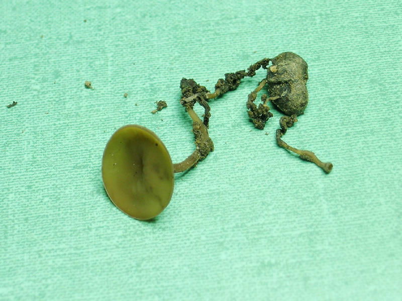 Mi sa che come al solito ho combinato un pasticcio. Ripeto la presentazione: sotto laurus nobilis e ligustrum sp. in giardino 120 mt slm. ho rinvenuto quello che secondo me è Sclerotinia sclerotiorum. Dimensioni: Ascoma di circa 18mm. di diametro, Gambo molto lungo, circa 45mm, Sclerozio oscuro 11x7mmcon alcuni primordi. Purtroppo causa maltempo ho 1 solo esemplare ma posso sempre rimediare. Inserisco 6 allegati di cui 1 già inserito. Spero di avere determinato giusto. Peppinomorra. Immagine: