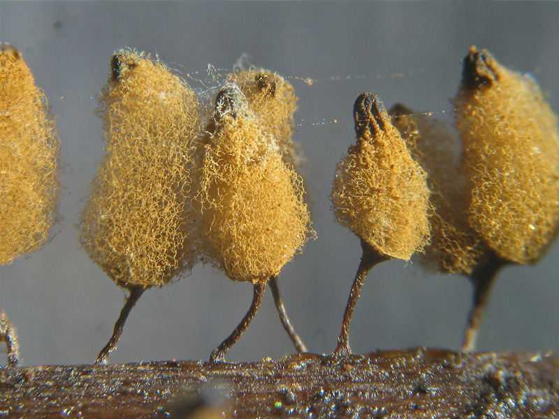Salve rgazzi/e  raccolti nei boschi attorno al lago, su tronchi in decomposizione; le foto allo stereo a 20x e lunghe 7,5 mm: