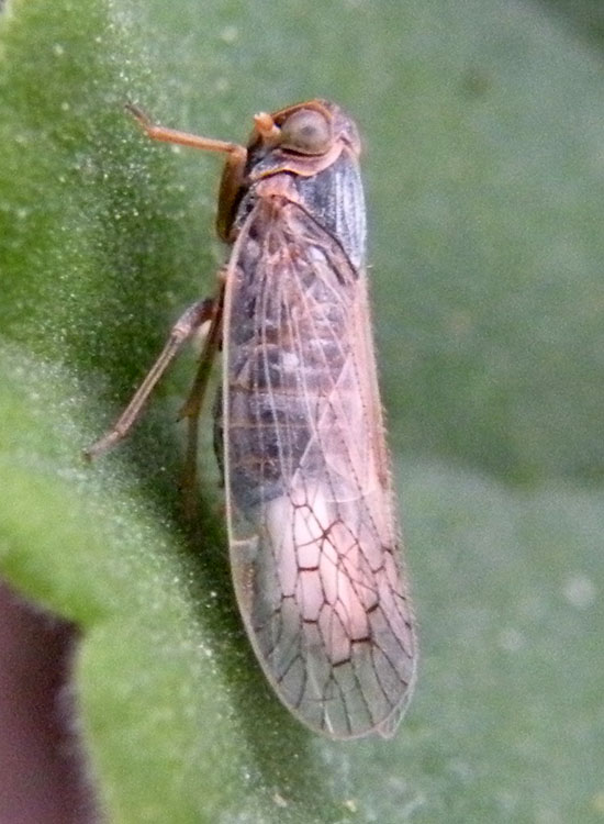 Vengo in "aiuto" a Danilo, che ha giustamente fatto notare la presenza delle 5 carene. Purtroppo non ho sottomano la chiave dicotomica, vado a memoria: escludo Hyalesthes, in cui le 5 carene sono appena accennate mentre qui appaiono ben marcate; escludo anche Pentastiridius, troppo piccolo e poi in quel genere l'angolo formato tra vertice e fronte è acuto, mentre in questo caso è retto; ed escludo Pentastira, dovrebbe avere più spazio tra l'occhio composto ed il margine della fronte (o forse ho invertito i caratteri di Pentastiridius e Pentastira, boh?). Setapius proprio non me lo ricordo, comunque a me questo sembra proprio un Reptalus, femmina (si intravede la massa cerosa che ricopre l'addome). E qui ci si ferma, perché l'unica specie identificabile dalle femmine è R. cuspidatus, da caratteri sistematici a livello delle zampe che qui comunque non si vedono (altrimenti si possono identificare solo i maschi attraverso l'esame dei genitali, oppure bisogna usare tecniche di biologia molecolare). Io oserei dire Reptalus sp.