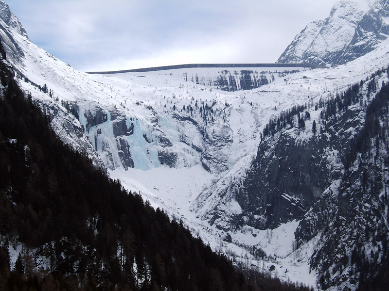 Percorrendo la val Bregaglia (Svizzera), passando sotto la diga d'Albigna, ho notato uno strano contrasto tra i colori del ghiaccio: