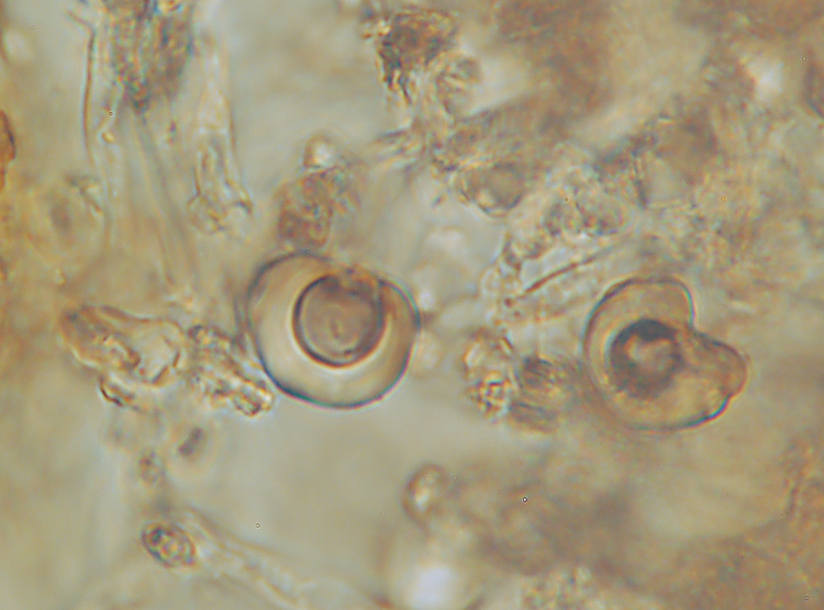 L’avevo già trovato altre volte in questo sentiero. Le sue spore caratteristiche sembrano liscie ma ad alto ingrandimento (1000x) e in contrasto di fase mostrano la loro parete tubercolata.