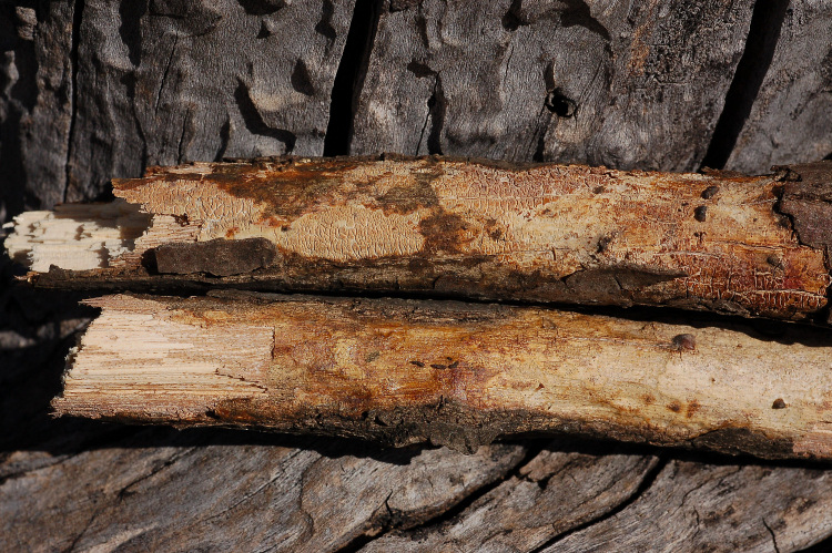 Vuilleminia comedens (Nees) Maire è probabilmente il fungo più frequente in questa zona (oggi l’ho visto una decina di volte). E’ una specie decorticante, cioè cresce sotto la corteccia, distaccandola a maturità per liberare le spore. Trovata sempre su branche morte di quercia, spesso ancora in piedi. Immagine: