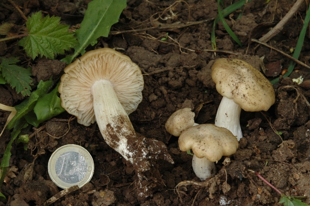 Oltre il colore leggermente differente (comunque è un carattere di nota variabilità), ricordo per E.clypeatum un odore effettivamente più delicato e farinoso mentre negli esemplari ancora in mio possesso mi è parso subito quasi simile al T.saponaceum, quindi sicuramente più rancido che farinoso. Odorandolo adesso, forse condizionato dai testi che ho visionato, sento leggere punte di cocco. Un'altra piccola annotazione che posso fare è nell'umbone: in E.clypeatum lo ricordo più ottuso rispetto a quello degli esemplari delle foto.