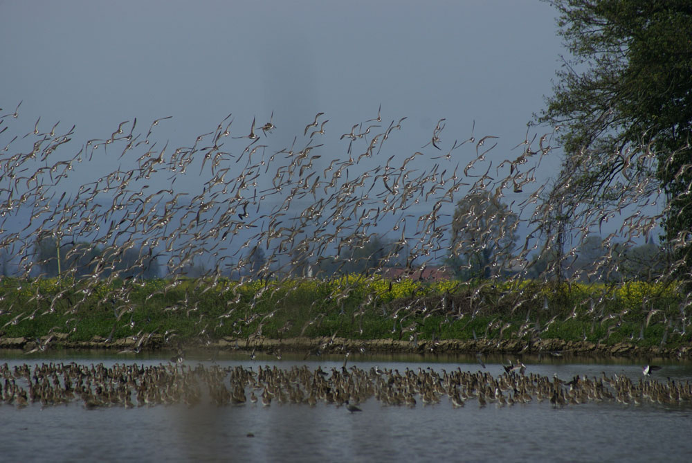Ci provo , spero di non spararla troppo grossa: la banda bianca sulla coda e le zampe che sporgono mi fanno pensare a dei piovanelli, ma aspetto con te la risposta degli esperti. Vedere uno stormo così deve essere stato più che emozionante! Complimenti per l'osservazione e le foto  Ciao Franziska |