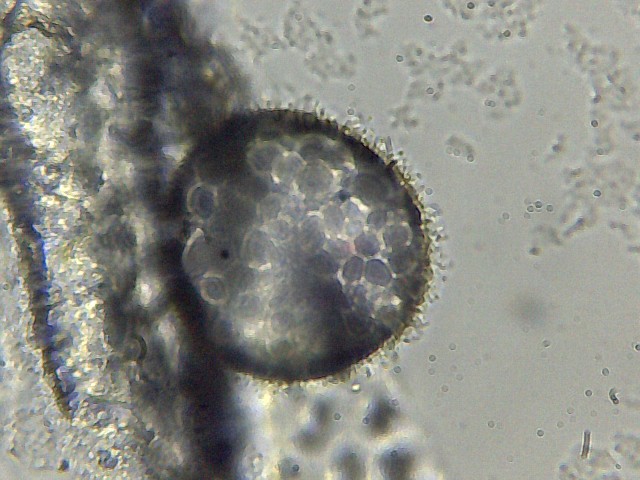 Ho trovato questa specie di uovo qualche giorno fa...non mi pare sia una bolla d'aria, perchè sembra avere le pareti pelose...comunque aspetto la vostra conferma. Colgo l'occasione per farvi una domanda:come si fa a distinguere i vari tipi di uova e cisti? Spesso leggo uovo di rotifero, cisti di questo, uovo di quello...come per i ciliati si considerano tratti distintivi la distribuzione delle ciglia e la forma e posizione del citostoma, cosa si deve osservare nel caso di cisti e uova? Escluso il caso del trachelius che, incistato, ruota all'interno, e quindi immagino sia facile da riconoscere.(Si ringrazia "Il pianeta invisibile") Ma è l'unico a comportarsi così?