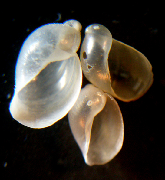 mm. 4,5 Forse della fam. Succineidae? Però quello in basso mi ricorda un giovanile di ciprea! Pantani di Vendicari SR