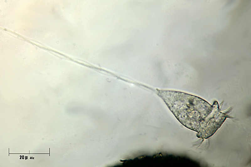 qui puoi vedere il caratteristico piede a spirale delle Vorticelle;