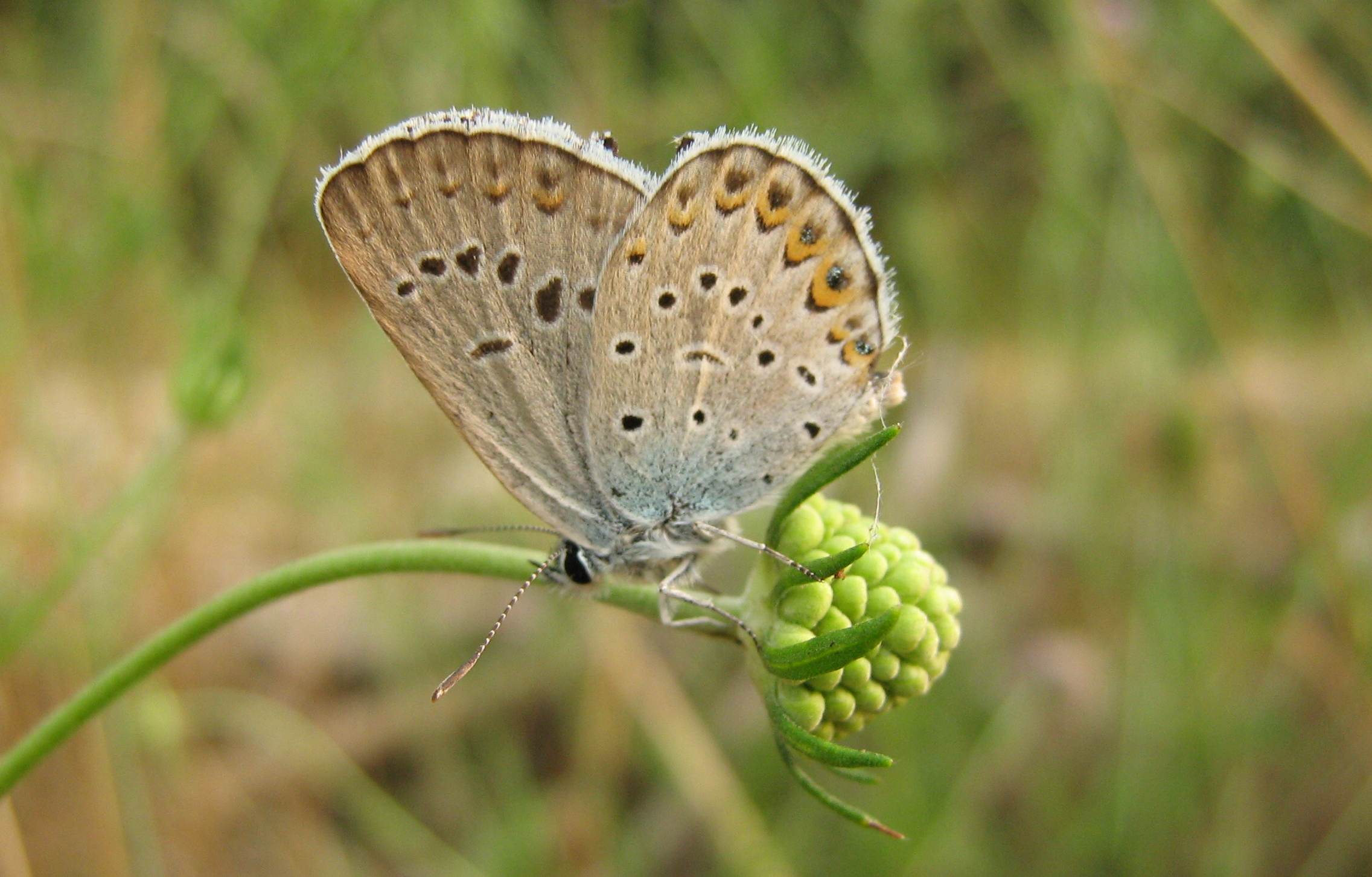 Oggi, lungo il fiume Stura circa 10 km a valle di Cuneo, Piemonte, quota 428 m., ho trovato questa farfallina blu che ondeggiava le ali chiuse al sole.