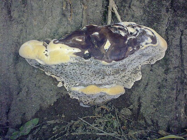 Mah, non saprei ricordare con precisione, comunque i colori sono corrispondenti alla realtà. Non aveva lamelle, superiormente era color crema e marrone molto scuro, quasi nero (ricordava un gelato crema e cioccolato!). Era vellutato al tatto. Inferiormente era grigio-azzurro con le piccole chiazze nere che si possono vedere in foto. Non avevo mai visto un fungo del genere. Ieri sono ripassata nello stesso posto, è un viale con alberi di tiglio. Questo fungo non c'era più, in un altro albero ve ne era un altro dello stesso tipo, ma più piccolo. Siamo in Pianura Padana, vicino la riva del Po. Comunque considero Perenniporia fraxinea e più tardi faccio qualche ricerca. Intanto grazie!