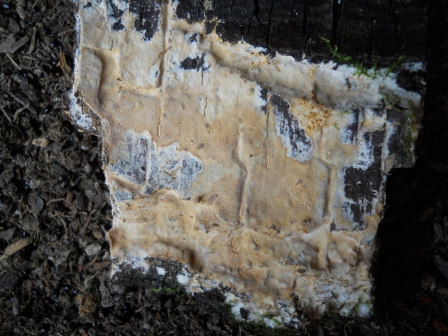 Non riesco a vedere bene le spore ed a capire le loro dimensioni quindi non posso che fare una debole supposizione: Phanerochaete velutina? |