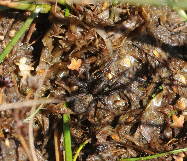 Habitus e disposizione oculare, nonché l'habitat, sono da Arctosa ma non conosco nessuna specie con quella precisa colorazione...