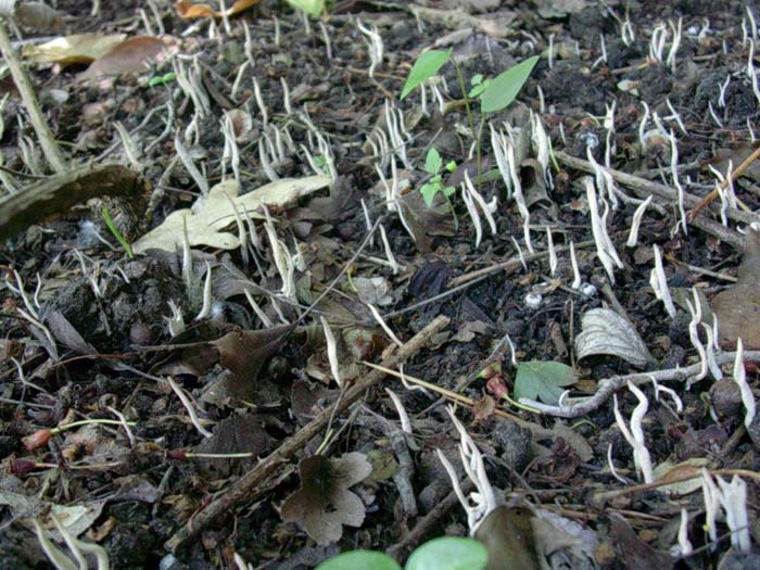 qui per terra e non su legno : non penso che possa essere Xylaria hypoxylon !!! penserei piu' volentieri alla forma " conidienne " di Xylaria carpophila (Pers.)FR. che cresce sopra le " cupule " di Fagus nascoste sotto il manto di foglie ... Mario