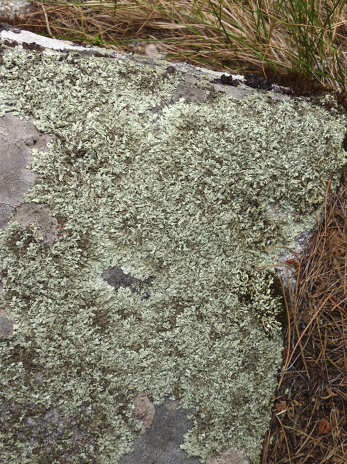 Ciao a tutti, sì, molto probabilmente X. stenophylla come suggerisce Christiano. In Mediterraneo c'è una cuginetta che le assomiglia molto: Xanthoparmelia protomatrae. Ha una reazione K+ marroncino dovuta all'acido fumarprotocetrarico. Anche la morfologia è leggermente diversa: X. protomatrae dovrebbe avere i lobi leggermente più tozzi... Non farei troppo affidamento su questa distinzione. X. protomatrae poi di solito sta molto molto più in basso, in ambienti di macchia o di querceta mediterranea... almeno in Italia. Ci sono altre specie di Xanthoparmelia senza isidi, ma sono molto più rare e hanno un portamento molto più attaccato alla roccia e lobi più piccoli. Ciao ciao, Poli