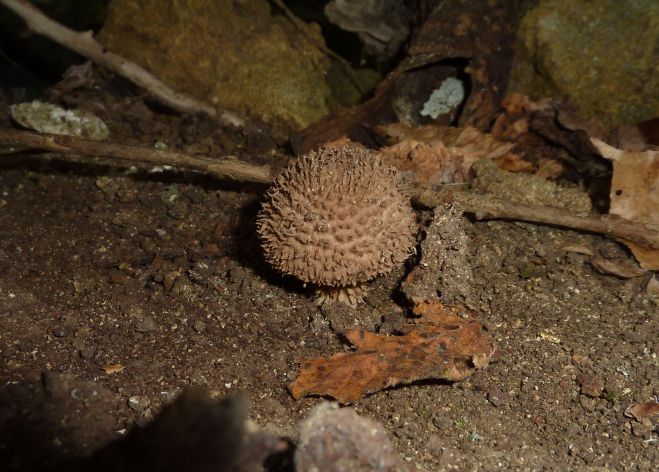 Non credo sia un Phaeomarasmius erinaceus, penso più ad un Lycoperdon echinatum che ha sviluppato uno pseudo gambo, (in verità minimo)