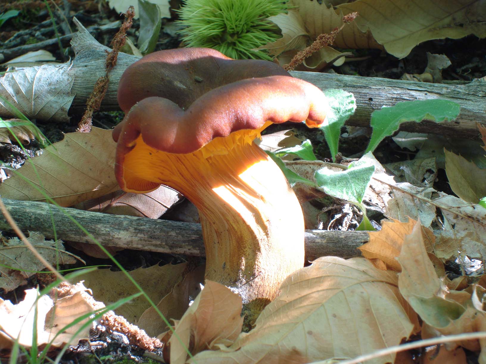 Non ti fare ingannare, spesso l'Omphalotus non cresce sul legno, ma lo vediamo sul terreno, dove poi (di nascosto) è attaccato ad una radice interrata, spesso lo troviamo non in cespi, come è più frequente, ma in esemplari singoli; poi per finire non si trova solo in presenza o sui tronchi degli olivi (ik suo vecchio nome era Clitocybe olearia, ma anche in presenza di molte altre latifoglie.