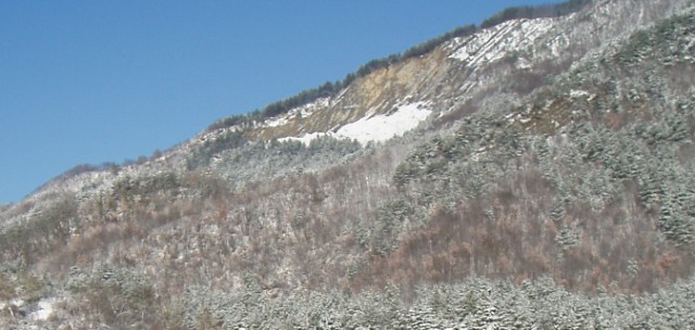 Poi,sempre in Marzo,non ricordo il giorno ci fu una frana enorme,! Sono tornato in loco in questi giorni,ed ho fatto un'altra foto,da un'altra angolazione però rispetto a Marzo. La pineta non c'è più! Immagine: