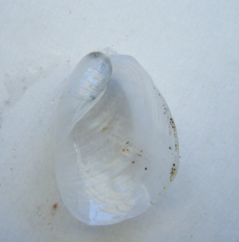 Conchiglia bianca semi-trasparente su sfondo bianco..... mimetismo perfetto.