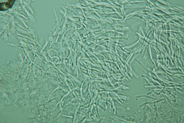 Spore cilindriche e a volte leggermente incurvate, ialine e non amiloidi, a parete liscia e sottile.