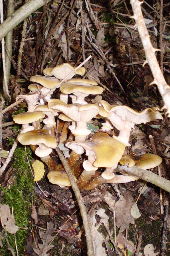 la prima foto ritrae i funghi al ceppo di corbezzoli, la seconda apoca distanza dall aprima, su terreno.