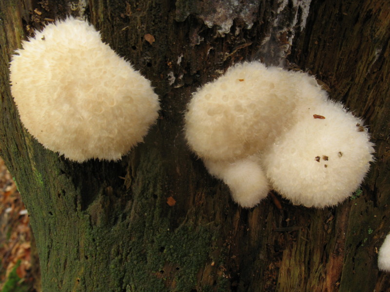 Ho rinvenuto questi funghi di consistenza spugnosa, di colore biancastro, appiccicate ad un tronco di faggio.A quale specie possono appartenere? Grazie, Maurizio.