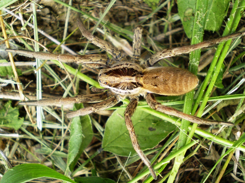Oggi 08 ottobre, Levanto, riviera ligure di levante(SP), oliveto esposto a sud, 70 m. circa slm. Tra l'erba bassa vedo correre questo soggetto, che riesco a fermare per il tempo di alcuni scatti. Dimensioni notevoli, apertura totale delle gambe almeno 6 cm (come il lato della compattina con cui ho fatto le foto, ed il cui autofocus -per una volta- non ha fatto di testa sua).