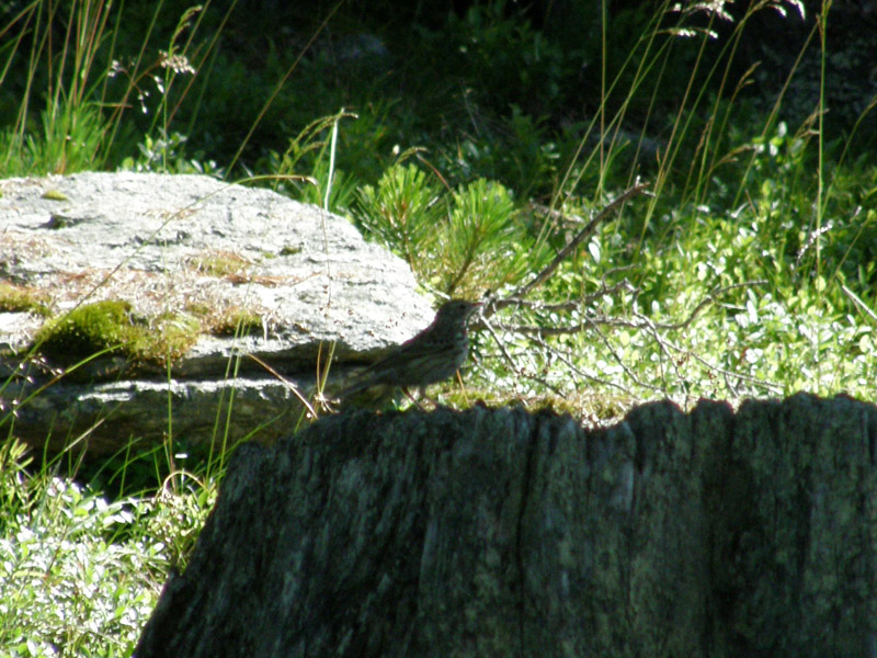 rispolvero un altro incontro dell'anno scorso, il 6 agosto a Grachen(Svizzera) a quota 2000m circa..stavo infatti entrando nella prima zona boscosa e l'ho visto veramente per 5 secondi..opterei per prispolone, ma questa famiglia la conosco davvero poco..