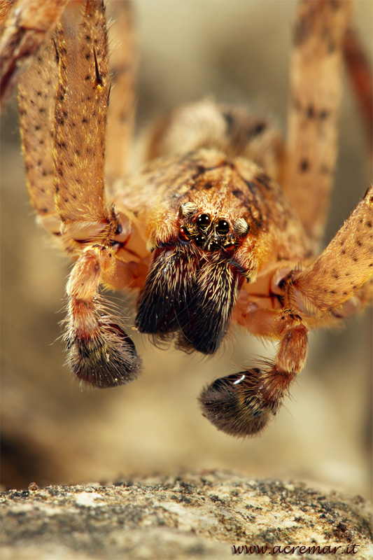 Foto scattata con Canon 100 mm + tubi Kenko per poterci avvicinare maggiormente e poter mettere bene in evidenza i cheliceri e i palpi (il che vuol dire che è un maschietto :wink: ), + 3 flash