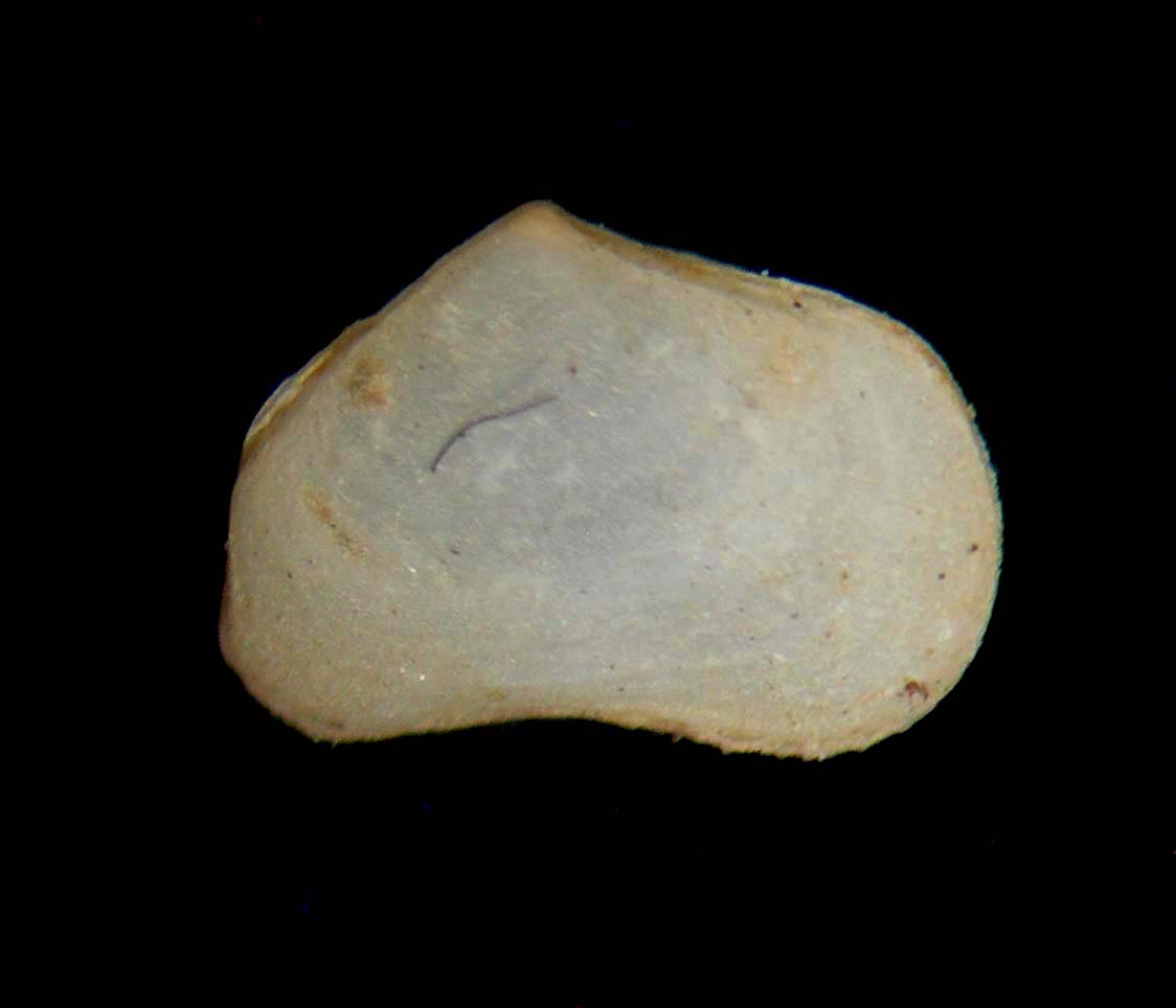 ... viste le dimensioni e senza visione della cerniera .... per l'angolo formato dai margini cardinali a lato dell'umbone, e dalla posizione di questo ... direi: Thracia distorta.