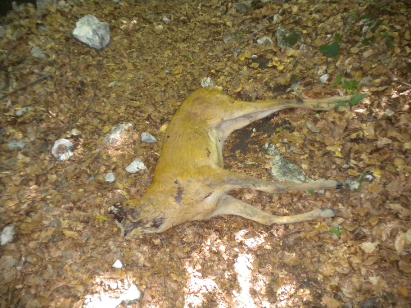 Credo si tratti del ritrovamento da parte di qualcuno ... di un maschio di capriolo morto, ... al quale è stata poi asportata la testa.