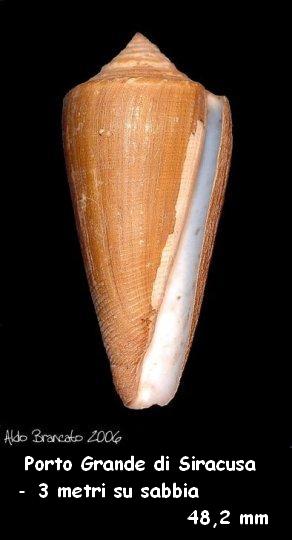 E' un conus Furvus, varietà lignarius, indopacifico sarà entrato attaccato a qualche nave bello, ma non ci sono altre segnalazioni che possano far presagire che si sia definitivamente introdotto nel mediterraneo