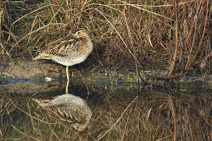 Una bellissima foto ad un Beccaccino, la Beccaccia ha una colorazione da "foglia morta" con tonalità rossicce e castane e poi frequenta habitat più asciutti del suo "parente" qui ritratto.