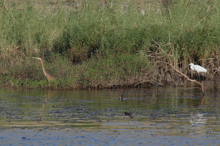 La vostra partecipazione invece mi incoraggia a porvi un altro quesito impossibile : Al margine di una foto d'ambiente (sulla quale usando la lente d'ingrandimento si distinguono una garzetta, dei cavalieri d'italia, delle oche egiziane, dei mignattai e il martin pescatore locale ) ho scoperto una sagoma che mi intriga... a partire del file raw ho cercato di fare un ingrandimento, bruttissimo, ma che mostra una sagoma molto eretta - stimo grande ca. 2/3 della garzetta. Si riesce ad azzardare un'ipotesi?