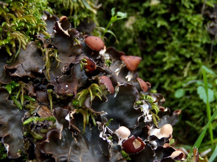 A me sembra Peltigera praetextata. Le rizini simplice, ben separate, la facia inferiore biancastro con vene piatte dello stesso colore. La facia superiore un po lanuginosa presenta picole schizidi cio che la distigue de quella di P.membranacea.