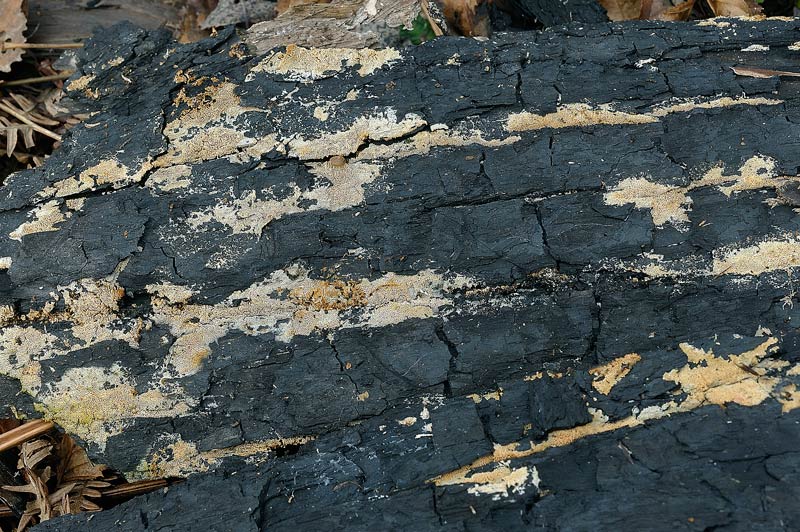 Mi è capitato di incotrarla su corteccia di pioppo completamente separata dal tronco e a terra, residuo di un incendio di 3 anni fa.