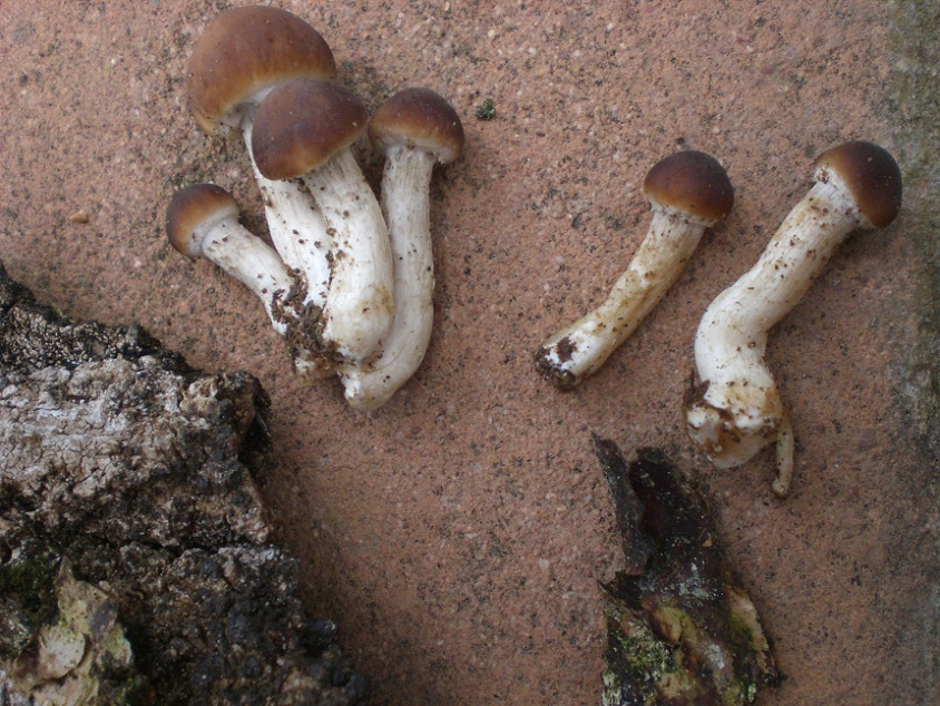 Vicino a quello che ho ipotizzato essere Gymnopilus spectabilis, sul tronco di pioppo marcescente ho trovato questi funghetti di taglia molto più piccola...